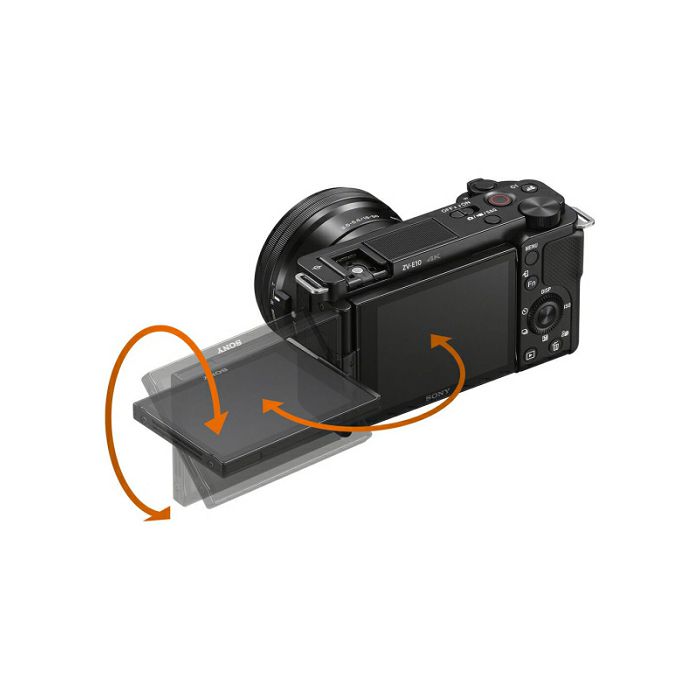 Budući da ZV-E10 teži samo 364 grama, možete ga ponijeti kad god budete spremni za snimanje novog vloga. LCD zaslon sa svestranim nagibom iz bočnog otvora olakšava snimanje selfija i provjeru kadriranja čak i pri snimanju u visokim ili niskim položajima, a ergonomska ručka dizajnirana je za sigurno i stabilno držanje.