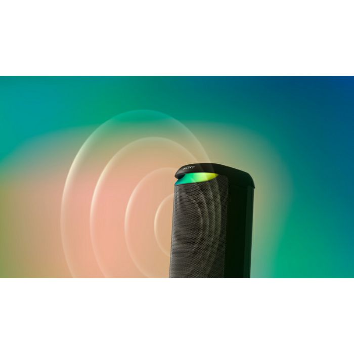 SRS-XV500 koristi subwoofere i prednje visokotonce za isporuku dubokog, živahnog basa i jasnih vokala. Uz još veći zvučni pritisak, nećete moći odoljeti želji za plesom.