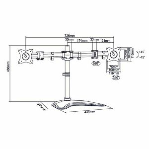 LCD-F024 Stalak za monitor SBox Stolni stalak za 2 monitora - SBOX Veličine ekrana: 13" - 27" / 33 - 68 cm Nosivost: do 8 kg (2 x 8kg) VESA: 75 x 75, 100 x 100 Okomiti nagib: ± 45° Horizontalno okretanje: 180° Rotacija: 360° Podešavanje visine Ugrađeni držači kablova Metalno postolje Boja: crna Materijal: čelik Dimenzije: 72,6 x 31,6 x 46,6 cm