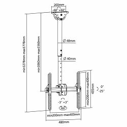 CPLB-9441 Stalak za TV SBox Okretni stropni stalak - SBOX Veličina ekrana: 32" - 55" / 81 - 140 cm Nosivost: do 50 kg Montaža: od VESA 200 x 200 do VESA 400 x 400 Udaljenost od stropa: 1060 - 1560 mm Okomiti nagib: -25° Okretanje: 360° Montaža: za kose stropove Neto težina: 5,84 kg Vodilice za organizaciju kablova