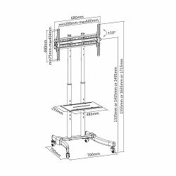 FS-400 Stalak za TV SBox Pokretni podni stalak za LCD/PLASMA ekrane Veličina ekrana: 32" - 70" / 82 - 178 cm Montaža: od VESA 200x200 do VESA 600x400 Težina: do 40 kg Vertikalni nagib: ±10° Promijenjiva visina: do 1715 mm Dodatna polica za AV componente Vodilice za kablove Ugrađeni kotačići