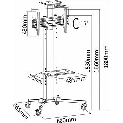 SBox FS-401Stalak za TVPodni stalak na kotačićimaVeličina ekrana: 32“ - 55“Težina: do 50 kgPodešavanje visineVertikalni nagib: ± 15°Max. visina: 1800 mmNetto težina: 17 kg