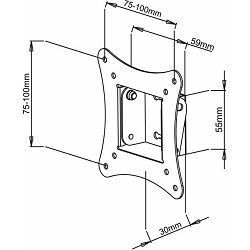 LCD-100Stalak za TV SBoxZidni stalakVeličina ekrana: 13" - 30" / 33 - 76 cmNosivost: 15 kgMontaža: od VESA 75 x 75 do VESA 100 x 100Udaljenost od zida: 30 mmOkomiti nagib: 0 - 12°Okretanje: nemaNeto težina: 0,45 kg
