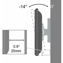 PLB-3422TStalak za TV SBoxZidni stalakVeličine ekrana: 23" - 42" / 94 - 178 cmNosivost: do 35 kgMontaža: od VESA 75 x 75 do VESA 200 x 200Udaljenost od zida: 25 mmOkomiti nagib: -14°Vertikalni nagib: nema