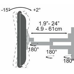 PLB-5463 Stalak za TV SBox Zidni stalak Za zakrivljene ekrane Veličina ekrana: 37" - 70" / 94 - 178 cm Nosivost: do 35 kg Montaža: od VESA 200x200 do VESA 600x400 Udaljenost od zida: 49 mm - 610 mm Okomiti nagib: +5° do -15° Horizontalni nagib: +90° + -90° Ugrađeni držači kablova
