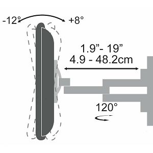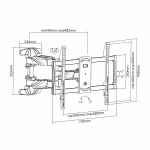 PLB-5466 Stalak za TV SBox Zidni stalak Za zakrivljene ekrane Veličina ekrana: 37" - 70" / 94 - 178 cm Nosivost: do 45 kg Montaža: od VESA 200x200 do VESA 600x400 Udaljenost od zida: 49 mm - 482 mm Okomiti nagib : +2° do -15° Horizontalni nagib : +60° do -60° Ugrađeni držači kablova