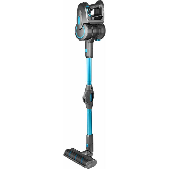 Ciklonski štapni usisavač bez vrećice sa HEPA filtrom 2u1 dizajn, jednostavna transformacija štapnog usisavača u ručni usisavač Dizajn bez vrećice s uklonjivim spremnikom za prljavštinu Spremnik za prljavštinu od 500 ml Indikator punog spremnika Pogodno za sve vrste podova Suho usisavanje s mogućnošću brisanja Izuzetno učinkovit 200 W BLDC motor Snažna Li-ionska baterija koja se može ukloniti i zamijeniti: 22,2 V 2200 mAh Okretna četka s električnim pogonom za optimalno čišćenje Uklonjiva četka za prašinu LED rasvjeta usisane površine Jednostavno rukovanje i kretanje po namještaju zahvaljujući pomičnom spoju usisne mlaznice Lagana i fleksibilna aluminijska usisna cijev za jednostavno usisavanje ispod namještaja Mrežno napajanje / Baterija Vrijeme punjenja: 4,5 sati Radno vrijeme po punjenju: približno 30 minuta (niska brzina), 15 minuta (velika brzina) Kontrolna lampica napajanja Regulacija snage štapnog usisavača Izlazni filtar za prašinu: pjenasti Ulazni filtar: HEPA + pjena Filtar motora: pjena HEPA filtar: klasa 12 Korisna duljina štapa: 74 cm (cijeli štap 77,7 cm) Širina četke: 22 cm Duljina adaptera: 150 cm Pribor: četka za prašinu, rotirajuća parketna mlaznica sa zamjenjivim nastavkom za tvrde podove ili tepih sa LED pozadinskim osvjetljenjem, jastuk za mogućnost brisanja (npr. Mokri podovi) Kotači s gumenom površinom Zaštita od pregrijavanja Položaj za parkiranje – samo pomoću zidnog držača Mogućnost pričvršćivanja usisavača na zid (držač je dio pakiranja) Buka: 75 dB Usisna snaga: ?9kPa – ?15kPa Max. snaga: 200 W Adapter za napajanje: AC 100-240 V, 50/60 Hz, 0,5A DC 26,5 V – 500 mA Baterije: Li-ion baterije 22,2 V (6× 3,7 V); 2200 mAh Masa: 3,34 kg