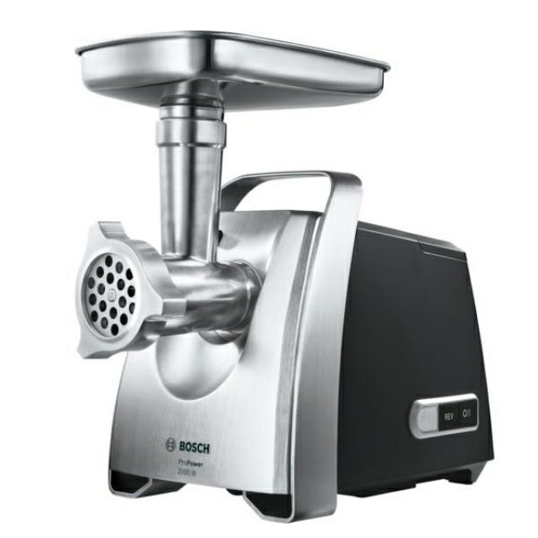 MFW68640 Stroj za mljevenje mesa Bosch Kapacitet prerade: 4,3 kg / min. Prilagodljiv asistent za svakodnevno korištenje s više od 15 funkcija Mljevenje mesa ili ribe Nastavci za sjeckanje povrća i sira te mljevenje oraha Nastavak za punjenje kobasica Nastavak za kebbe Promjer šajbi: 3, 4.8 i 8 mm Snaga: 2200 W - redukcija na 800 W