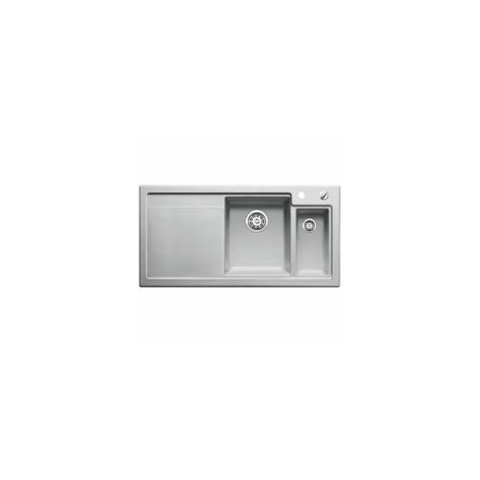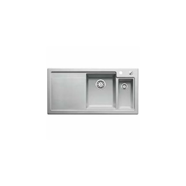 Blanco keramika PuraPlus Može se kombinirati s dodatnim priborom parnog sistema Nizak rub i velike površine stvaraju estetski ugodan dojam Pomična daska za rezanje omogućava rezanje direktno u tavu ili posudu Multifunkcionalna kadica od plemenitog čelika - može se staviti poprijeko na glavni bazen Bočni rub za sigurno odlaganje daske za rezanje ili lima za pečenje Odvodna garnitura s cijevi koja štedi prostor Košarasti ventili 3 1/2" i 1 1/2" Daljinsko upravljanje za glavni bazen Dimenzije sudopera: 1000 x 510 mm Dimenzije otvora za ugradnju: 977 x 488 mm R5 Dubina bazena: 185/140 mm Boja: alusiva