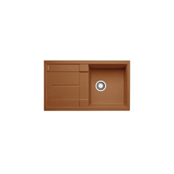 Silgranit PuraDur II Ravni oblici mladolikog izgleda Privlačne linije u funkcionalnom obliku Posebno dubok i prostran bazen na malom prostoru Funkcionalna ploha za cijeđenje, upotrebljiva i kao radna površina Niski, estetski oblikovani rubovi Dimenzije sudopera: 860 x 500 mm Dimenzije otvora za ugradnju: 840 x 480 mm Boja: konjak