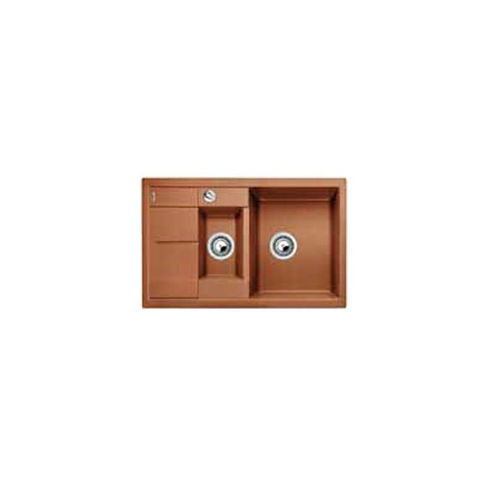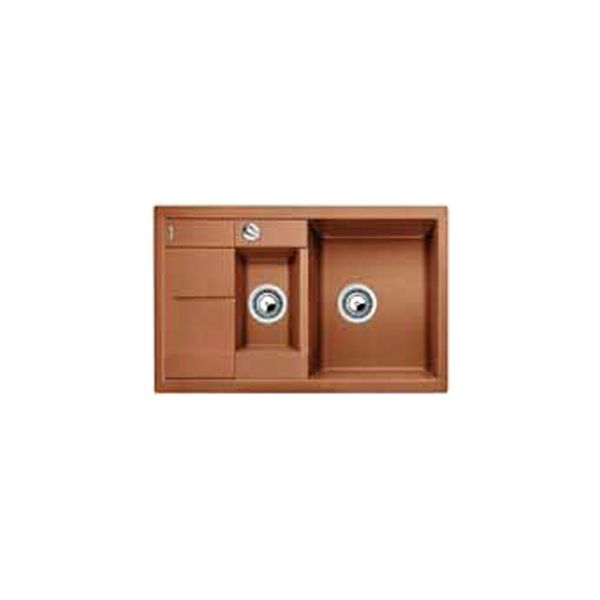 Silgranit PuraDur II Glavni bazen nudi puno prostora prilikom pranja posuđa Veliki i naročito prostrani bazeni Mala površina za cijeđenje Dodatni bazen omogućava visok stupanj udobnosti Estetski ravno oblikovani rubovi Daljinsko otvaranje odvoda Dimenzije sudopera: 780 x 500 mm Ugradbene dimenzije: 760 x 480 mm Boja: konjak
