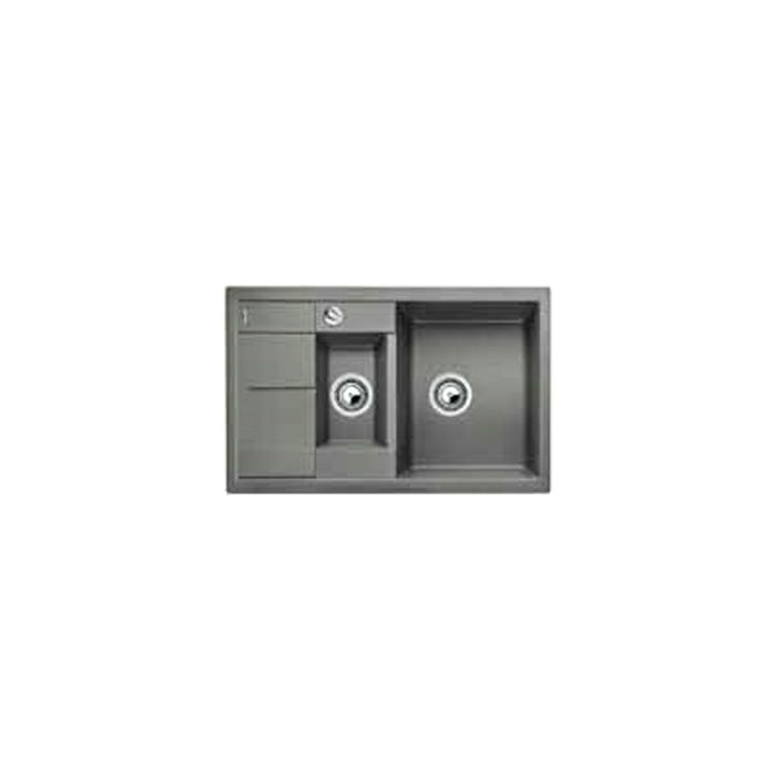 Silgranit PuraDur II Glavni bazen nudi puno prostora prilikom pranja posuđa Veliki i naročito prostrani bazeni Mala površina za cijeđenje Dodatni bazen omogućava visok stupanj udobnosti Estetski ravno oblikovani rubovi Daljinsko otvaranje odvoda Dimenzije sudopera: 780 x 500 mm Ugradbene dimenzije: 760 x 480 mm Boja: alumetalik
