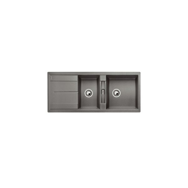 Silgranit PuraDur II Ravni oblici mladolikog izgleda Privlačne linije u funkcionalnom obliku Maksimalno iskorišten prostor zahvaljujući velikom glavnom bazenu i prostranom dodatnom bazenu Funkcionalna ploha za cijeđenje, koristi i kao radna površina Niski, estetski oblikovani rubovi Odvodna garnitura s cijevi koja štedi prostor Košarasti ventili 3 1/2" Dimenzije sudopera: 1160 x 500 mm Dimenzije otvora za ugradnju: 1140 x 480 mm R15 Boja: alumetalik