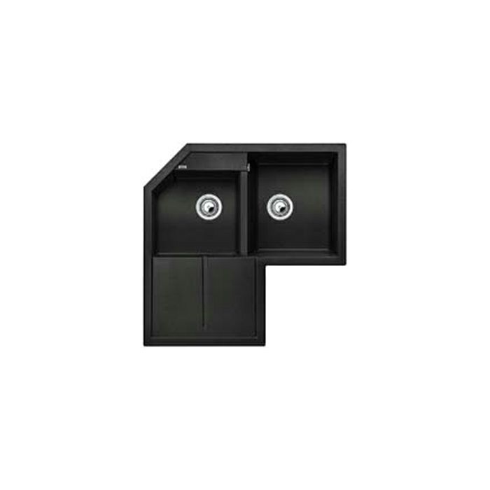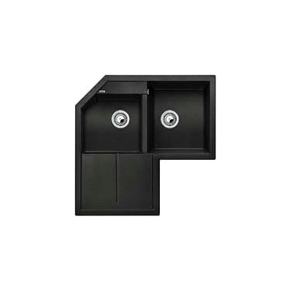 Silgranit PuraDur II Sudoper za ugradnju u kut kuhinje Ravni oblici mladolikog izgleda Posebno velik glavni bazen i dodatni bazen Dio za cjeđenje može služiti i kao radna podloga Dva košarasta ventila Odvodna garnitura sa cijevi koja štedi prostor Dimenzije sudopera: 830 x 830 mm Boja: antracit