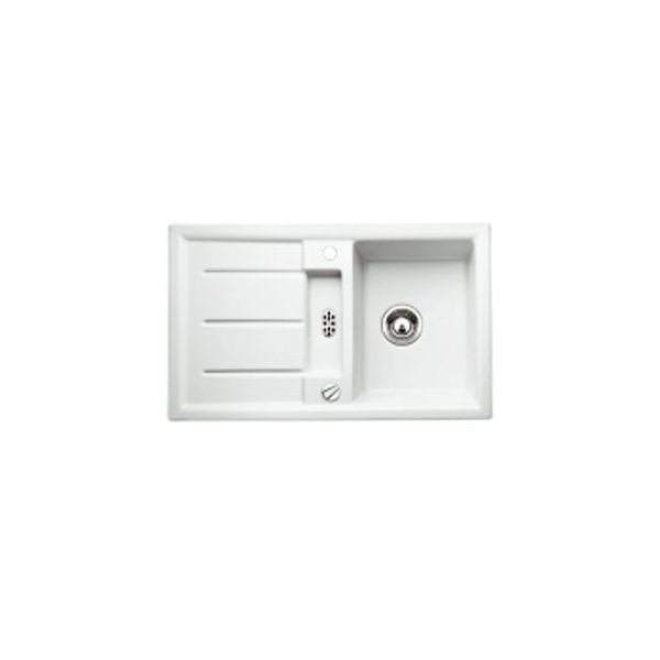 Blanco keramika PuraPlus Udobno obavljanje posla zahvaljujući velikom i dubokom glavnom bazenu S ugrađenim odvodom s površine za cijeđenje Keramika najviše kvalitete od gline pečene u peći za željezo Površina laka za čišćenje Odvodna garnitura s cijevi koja štedi prostor Košarasti ventil 3 1/2" Daljinsko upravljanje za bazen Dimenzije sudopera: 780 x 510 mm Dimenzije otvora za ugradnju: 758 x 488 mm R5 Dubina bazena: 185 mm Boja: bijela