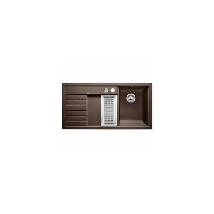 Silgranit PuraDur II Koncept s 3 zone: glavni bazen, radni prostor, prostor za cijeđenje Fleksibilan radni prostor sa savršeno prilagođenom daskom za rezanje Ravna ocjedna ploha PVC daska za rezanje Multifunkcionalna kadica od plemenitog čelika Odvodna garnitura s cijevi koja štedi prostor Košarasti ventili 3 1/2" Daljinsko upravljanje za glavni bazen Dimenzije sudopera: 1000 x 510 mm Dimenzije otvora za ugradnju: 980 x 490 mm R15 Dubina bazena: 190/140 mm Boja: kava