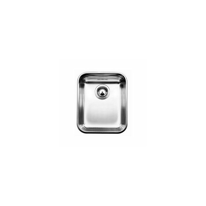 Sudoper Blanco BlancoYpsilon 340-U 511347 Plemeniti čelik, svilen sjaj Bazen za ugradnju pod radnu plohu Odvodna garnitura s cijevi koja štedi prostor Košarasti ventil sa daljinskim upravljanjem na povlačenje (otvor 14 mm sa donje strane) Dimenzije: 340 x 420 x 175 mm Radius: 60 mm