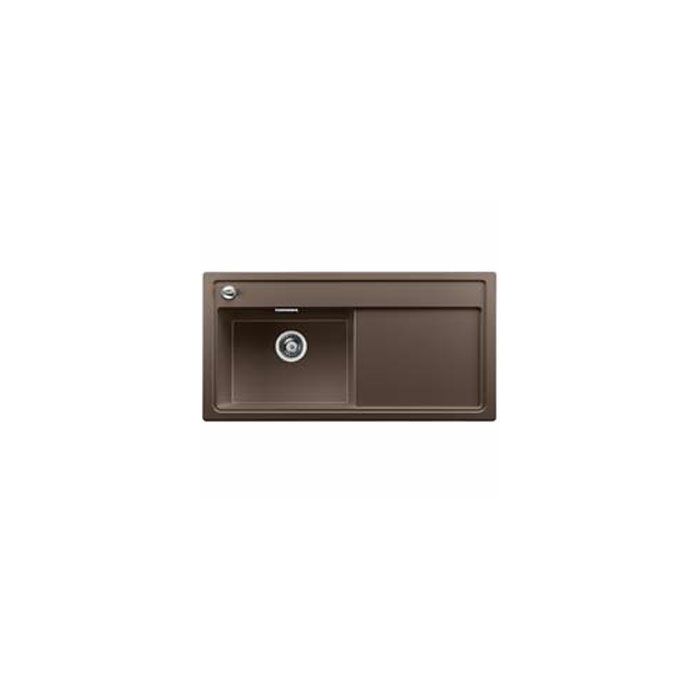 Silgranit PuraDur II Posebno velik bazen s prostranom ocjednom plohom Polica za pipu po cijeloj dužini pruža puno prostora Moderan i higijenski: preljev C-overflow Plosnat, zaobljen rub Odvodna garnitura s cijevi koja štedi prostor Košarasti ventil 3 1/2" Daljinsko upravljanje za bazen Dimenzije sudopera: 1000 x 510 mm Dimenzije otvora za ugradnju: 980 x 490 mm R15 Dubina bazena: 190 mm Velika staklena daska za rezanje Multifunkcionalna kadica od plemenitog čelika Boja: kava