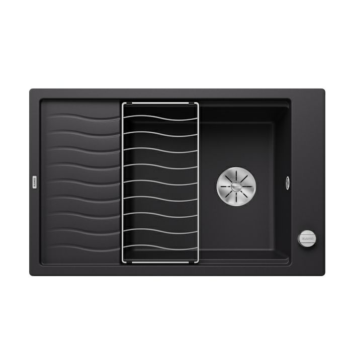 Sudoper Blanco Elon XL 6 S InFino Silgranit PuraDur Crna S daljinskim upravljanjem 525882 Veliko rješenje za male prostore Kompaktan sudoper s jednim bazenom, pogodan i za male kuhinje Praktičan i funkcionalan XL bazen Inovativno: ocjedna ploha se može produžiti zahvaljujući multifunkcionalnoj pomičnoj mreži od plemenitog čelika (u isporuci) Moderan, valovito dizajniran sudoper i savršeno usklađen dodatni pribor odlično se nadopunjuju Polica za pipu smještena sa strane – idealna za ugradnju sudopera ispred prozora Univerzalni bazen pruža mogućnost ugradnje na obje strane InFino® inovativan sustav odvoda Dimenzije: 780 x 500 x 190 mm
