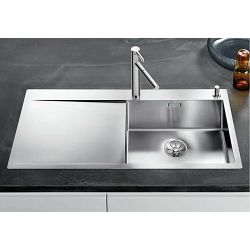 Flow XL 6 S-IF InFino 521640 Sudoper Blanco Plemeniti čelik - svilen sjaj Ocjedne plohe glatko spojene s bazenom Tanak IF rub daje elegantan izgled i mogućnost površinski poravnate ugradnje Dimenzije: 1060 x 510 mm Dubina bazena: 190 mm Odvodna garnitura s cijevi koja štedi prostor Artikl po narudžbi