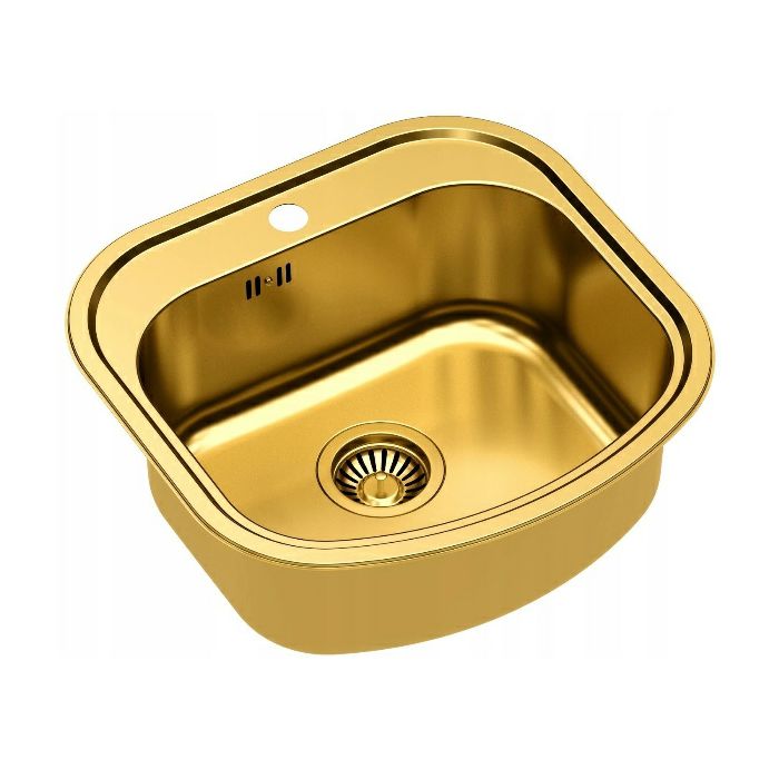 Quadron HB7701PVDBSG1 RAY 110 nehrđajući čelik Materijal: SteelQ nehrđajući čelik u PVD tehnologiji Standardni sifon Priprema za slavinu Dimenzije: 490 x 470 mm Dubina bazena: 180 mm Dimenzije bazena: 420 x 350 mm Boja: zlatna