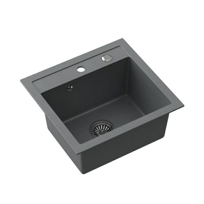 Quadron HCQJ5047SZK JOHNNY 110 Steingran Standardni sifon Priprema za slavinu Materijal sudopera: 74% granita kvarca spojenog visokokvalitetnim smolama Dimenzije: 500 x 470 mm Dubina bazena: 185 mm Dimenzije bazena: 430 x 325 mm Boja: siva