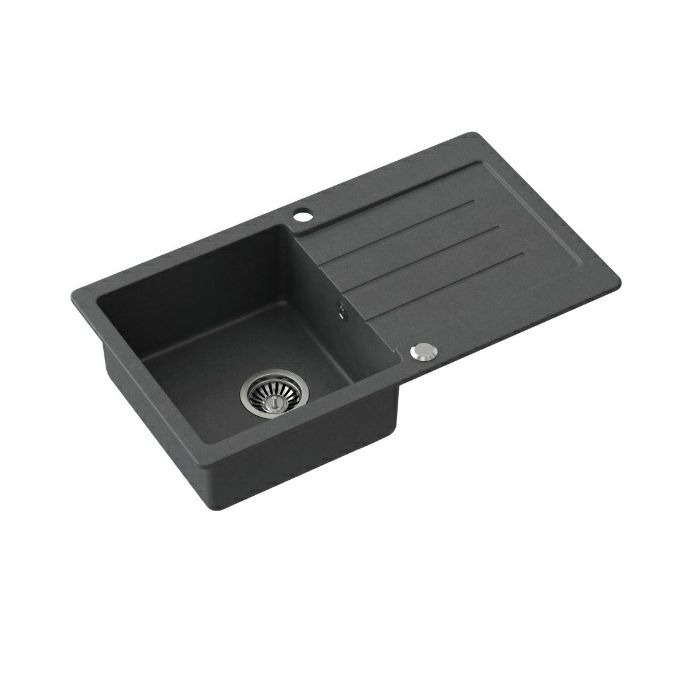 Quadron HCQJ7744CZK JOHNNY 111 Steingran Standardni sifon Priprema za slavinu Materijal sudopera: 74% granita kvarca spojenog visokokvalitetnim smolama Dimenzije: 770 x 440 mm Dubina bazena: 185 mm Dimenzije bazena: 348 x 370 mm Boja: crna