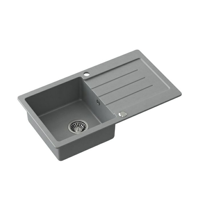 Quadron HCQJ7744SZK JOHNNY 111 Steingran Standardni sifon Priprema za slavinu Materijal sudopera: 74% granita kvarca spojenog visokokvalitetnim smolama Dimenzije: 770 x 440 mm Dubina bazena: 185 mm Dimenzije bazena: 348 x 370 mm Boja: siva