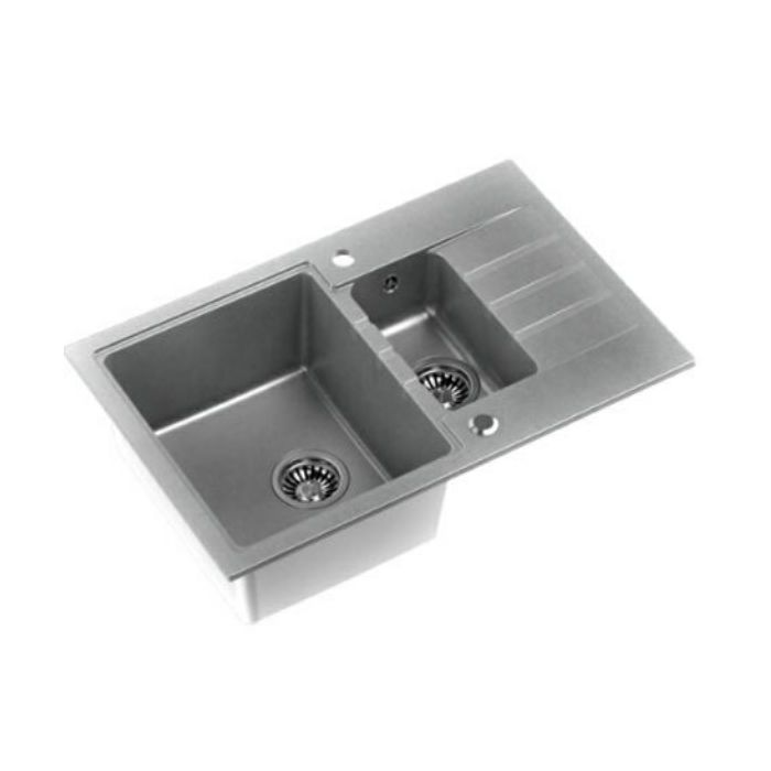 Quadron HCQP57850SZK PETER 156 Steingran Standardni sifon Priprema za slavinu Materijal sudopera: 74% granita kvarca spojenog visokokvalitetnim smolama Dimenzije: 780 x 500 x 200 mm Dimenzije bazena: 350 x 420 x 200 mm Dimjenzije pomoćnog bazena: 160 x 300 x 135 mm Boja: siva