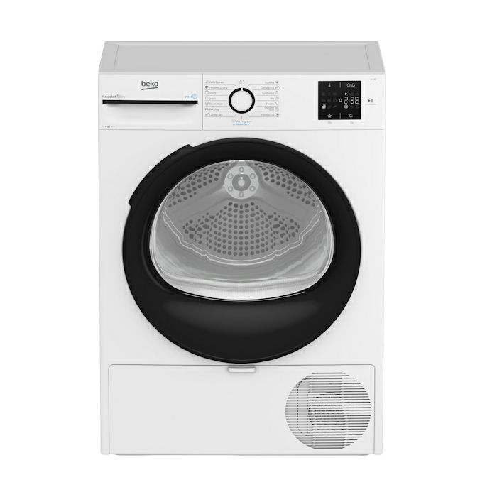 Beko BM3T37239WB Sušilica rublja (Toplinska pumpa, 7 kg) AquaWave® Djelovanje bubnja nalik valovima za nježniji tretman 15 programa Cottons Eco Dry Programme Hygienic Drying Tehnologija sušenja: toplinska pumpa IonGuard Steam Cure Fusion filter AquaWave Boja: bijela Mjesto spremnika za vodu: gore Izravni odvod Energetska klasa: E Kapacitet sušenja: 7 kg Razina buke: 64 dBA Godišnja potrošnja električne energije (kWh/godišnje): 212 kWh Senzor sušenja Visina: 84.6 cm Širina: 59.8 cm Dubina: 54.5 cm Težina: 39.5 kg Sigurnosno zaključavanje Pokazatelj roditeljskog zaključavanja Pokazatelj punoće spremnika za vodu Pokazatelj čišćenja filtra