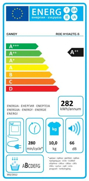 Vrsta sušilice: toplinska pumpa Samostojeća Nazivni kapacitet - pamuk (kg): 10 Napredno upravljanje na daljinu i dodatni sadržaj (Wi-Fi + BLE) IoT App: hOn Materijal bubnja: galvanizirani čelik Volumen bubnja (l): 125 Položaj kondenzacijske posude: in door tank Podesive nožice Woolmark cerifikat Odgoda početka do 24 h Pokazatelj završetka ciklusa Boja uređaja: bijela Klasa energetske učinkovitosti: A++ Godišnja potrošnja energije (kWh/god): 282 Klasa učinkovitosti sušenja (od G kao najmanje do A kao najveće): B Potrošnja energije - pun kapacitet (kWh): 2,43 Potrošnja energije - djelomičan kapacitet (kWh): 1,21 Visina s gornjom pločom (mm): 850 Širina (mm): 596 Dubina (mm): 585 Neto težina (kg): 41,2
