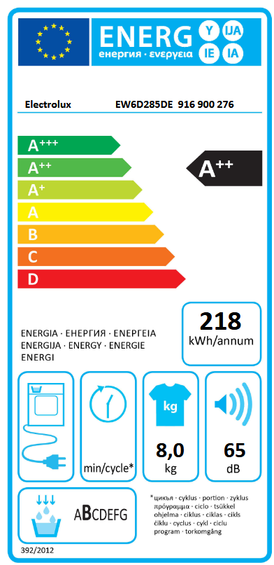Inverterski motor Kapacitet maksimalnog punjenja: 8 kg Senzori sušilice: prepoznaju razinu željene razine sušenja Elektronika ove sušilice mjeri vlažnost tkanine i prekida postupak sušenja kada dostigne željenu razinu vlažnosti određenu programom. Programi dodatnog vremenski određenog sušenja Odgođen start Tehnologija toplinske pumpe za energetsku učinkovitost Razred energetske učinkovitosti A++ Energetska učinkovitost kondenzacije u skali od klase G (najmanje učinkovita) do klase A (najučinkovitija) B Razina buke u decibelima (dB) 65 Dimenzije VxŠxD (mm): 850x596x638 Priključak napajanja, W: 700 Napon, V: 230