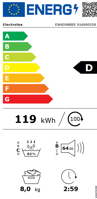 Electrolux EW6D98BEE Electrolux 600 GentleCare sušilica s toplinskom pumpom kapaciteta 8 kg