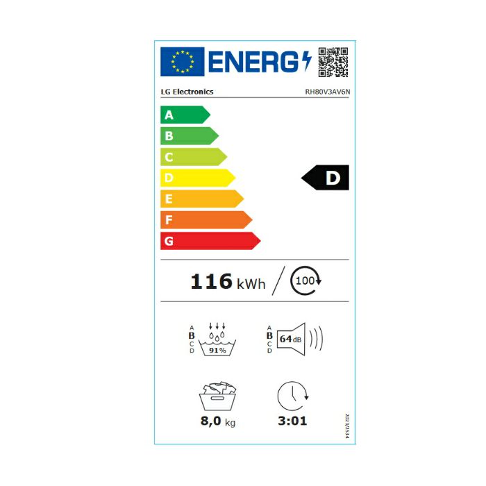 Sušilica rublja LG RH80V3AV6N (A), 8 kg, Dual Inverter Heat Pump