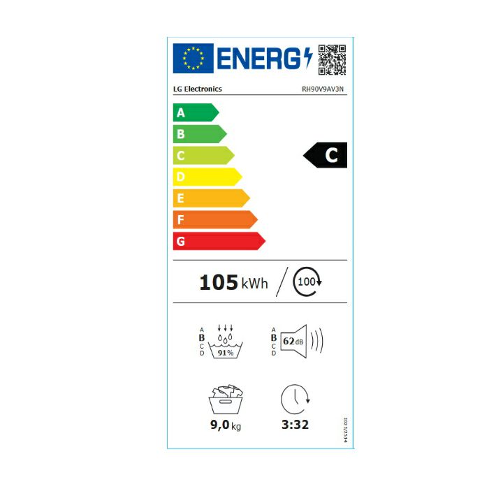 LG RH90V9AV3N je premium sušilica rublja s toplinskom pumpom, dizajnirana za učinkovito, tiho i nježno sušenje uz minimalnu potrošnju energije. • Zahvaljujući DUAL Inverter Heat Pump™ tehnologiji, omogućuje stabilne performanse i niže temperature sušenja, čime štiti tkanine i smanjuje troškove. • Sensor Dry automatski prilagođava trajanje ciklusa prema razini vlage, dok Eco Hybrid™ nudi izbor između uštede energije i vremena. • Antialergijska njega uklanja do 99.9% bakterija i grinja, potvrđeno TÜV certifikatom. • Automatsko čišćenje kondenzatora olakšava održavanje, a Wi-Fi povezivost omogućuje upravljanje putem aplikacije ThinQ™. • Reverzibilna vrata, LED osvjetljenje bubnja i elegantan dizajn čine je savršenim dodatkom za svaki dom.