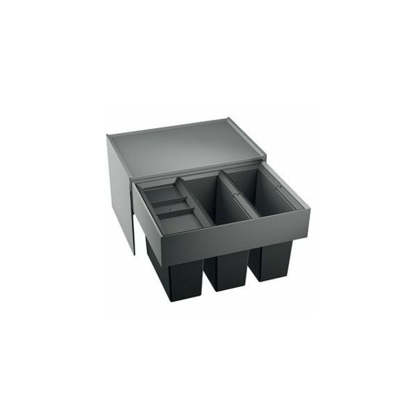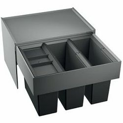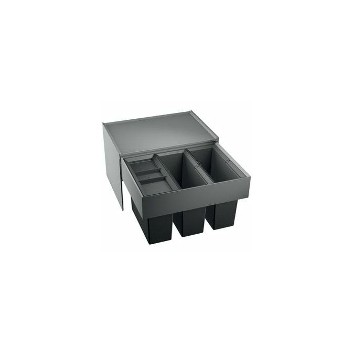Sustav za odvajanje otpada Blanco BlancoSelect 60/3 518724 Sistem za odvajanje otpada i organizaciju nove generacije Moderan, skladan i funkcionalan dizajn Integrirana konstrukcija sprečava skupljanje prljavštine Svi dijelovi lako se čiste Visokokvalitetan poklopac sistema može se u potpunosti izvaditi Jednostavna i brza ugradnja Opcija uz nadoplatu: BLANCOMOVEX papučica za nožno otvaranje sistema BLANCOSELECT, može se isto tako jednostavno ugraditi na svaka vrata izvlačnih elemenata Funkcionalno dizajnirane kante i vizualno integrirane ručke Okvir i poklopac od galvaniziranog čelika s vodilicama, plastične kante i pribor za ugradnju Širina podormara: 60 cm Kapacitet: 15 + 15 + 15 l BLANCOSELECT 60/3 518 724
