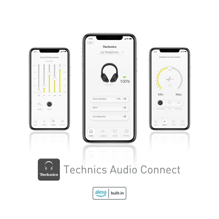 Prilagodite zvuk i koristite slušalice cijeli dan Aplikacija Technics Audio Connect* Nova aplikacija Technics Audio Connect* omogućuje jednostavno uparivanje, pomažući u finom podešavanju poništavanja buke i postavki načina zvuka prema vašim zahtjevima. *Kompatibilno s pametnim telefonima i tabletima s Android™ 6.0 ili novijim s podrškom za Google Play ili iPhone®, iPad® i iPod Touch® uređajima s iOS 12 ili novijim. Vodeća u industriji dugo trajanje baterije* S jednim punjenjem možete koristiti slušalice s uključenim uklanjanjem buke do 50 sati, brzo punjenje od 15 minuta dovoljno je za 10 sati reprodukcije; senzor istrošenosti za automatsko isključivanje; lako se sklapaju u kompaktnu torbu za nošenje.