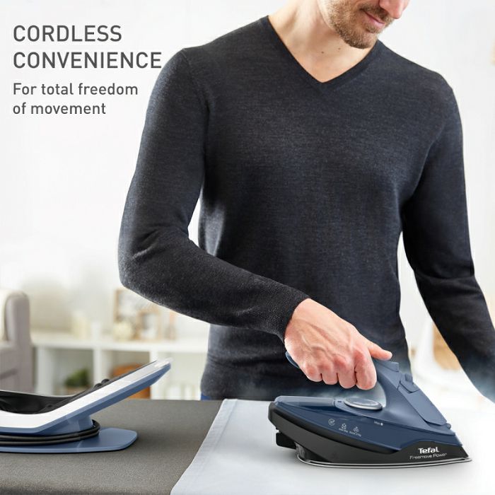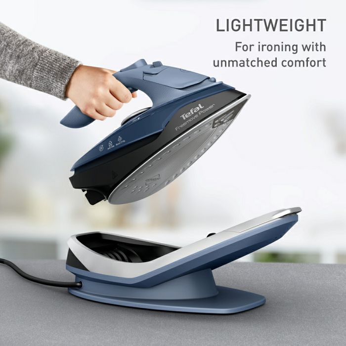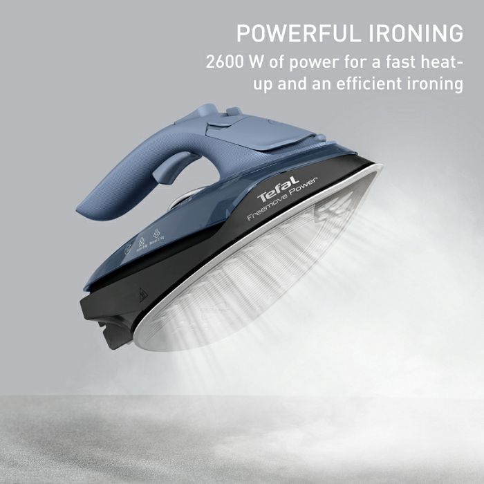 Tefal Freemove Power glačalo na paru bez kabla osigurava jednostavno održavanje odjeće. Ovo snažno bežično glačalo ima snagu od 2600 W, konstantan ispust pare do 40 g/min i udar pare od 220 g/min za tvrdoglave nabore. To je ergonomski i lagani (960 g) paket za njegu odjeće: horizontalna baza za maksimalnu udobnost i jednostavnost, glačanje bez kabela koje ne može biti glatko, automatsko isključivanje za potpuni mir i još mnogo toga.