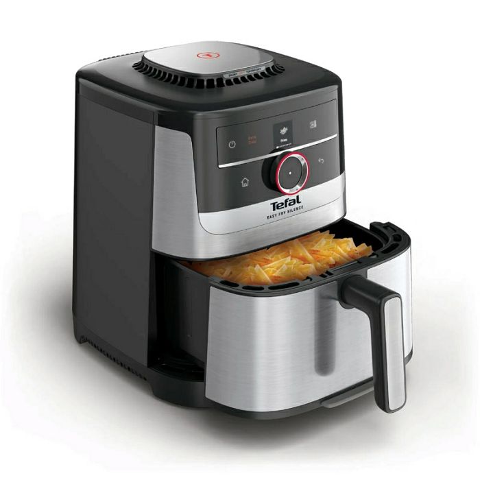 Najtiša friteza na vrući zrak s Tefalovom tehnologijom za kuhanje bez brige_x000D_ Otkrijte Tefal Easy Fry Silence, najtišu fritezu na vrući zrak, za savršene, ultra tihe rezultate. Uživajte u kuhanju bez stresa uz Smart Assist sustav koji vas vodi do besprijekornih rezultata. _x000D_ Uklonjiva prednja ploča osigurava jednostavno čišćenje i pohranu. Ima intuitivni zaslon osjetljiv na dodir i omogućuje prženje na vrućem zraku koje troši 70% manje energije od tradicionalnih pećnica._x000D_ _x000D_ Najtiša friteza na vrući zrak*_x000D_ Naša najtiša friteza na vrući zrak s ekskluzivnom Silent tehnologijom osigurava potpunu udobnost u kuhinji, s radnom bukom od samo 48 dB._x000D_ _x000D_ Sustav pametne pomoći_x000D_ Pametni sustav s ugrađenim zaslonom i preko 55 unaprijed postavljenih postavki vodi vas do idealnih postavki za savršene rezultate._x000D_ _x000D_ Sustav jednostavnog čišćenja i pohrane_x000D_ Naš jedinstveni sustav uklonjive prednje strane štedi prostor u perilici posuđa, a poklopac pretvara posudu u posudu za pohranu sigurnu u hladnjaku._x000D_ _x000D_ Kuhajte brže i uštedite energiju_x000D_ Hrskavi rezultati, 55% brži nego u pećnici, štedeći 70% energije.* *Testirano na smrznutom pomfritu, 2024._x000D_ _x000D_ Maksimalna svestranost_x000D_ Jednostavno upravljajte svojim kuhanjem: prženje na zraku, pečenje, pečenje u pećnici i još mnogo toga, od 40° do 220°C, za beskrajne kulinarske mogućnosti._x000D_ _x000D_ Zdrava alternativa_x000D_ Uživajte u hrskavim rezultatima s malo ili bez ulja, za do 99% manje dodane masti.* *Testirano 2024. na smrznutom pomfritu._x000D_ _x000D_ Personalizirano iskustvo_x000D_ Uživajte u jedinstvenom iskustvu s aplikacijom My Tefal - za prilagođene recepte, personalizirane usluge i ukusne svakodnevne obroke.