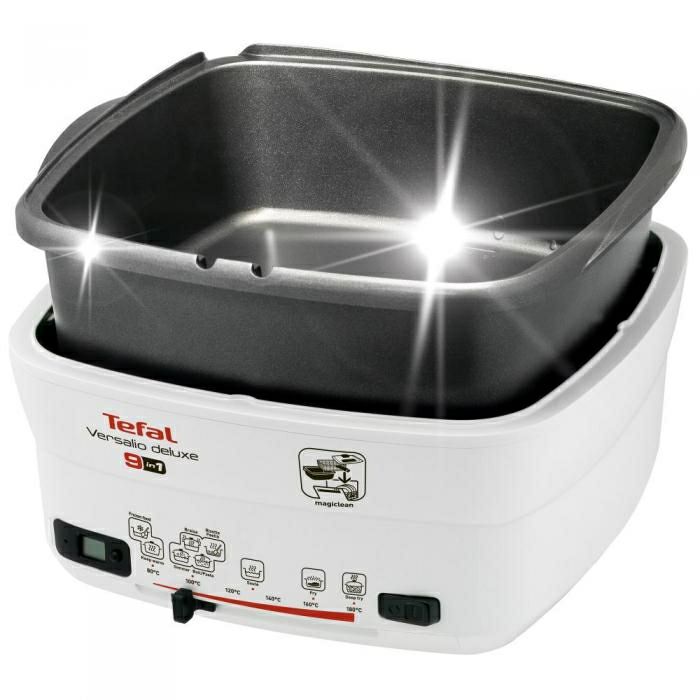 Tefal FR495070 "Versalio Deluxe II" friteza 9 u 1 omogućava prženje, pečenje, kuhanje, pirjanje hrane, kao i pripremu umaka, tjestenine, rižota, a također omogućava odmrzavanje i održavanje hrane toplom.