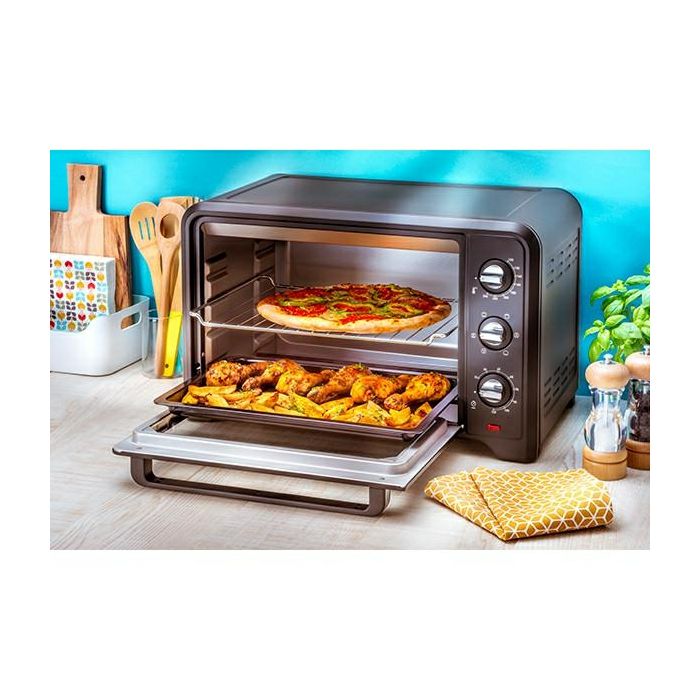 TEHNIČKE SPECIFIKACIJE: - Snaga: 1380 W, snaga roštilja 740 W Funkcije: 6 načina rada: konvekcija, klasični, roštilj, pečenje, bain marie i odmrzavanje - Dodatno: Odvojiva rešetka, posuda za sakupljanje, termostat, 2 sloja u staklenim vratima, maksimalna temperatura 240°C, trajanje timera 2 sata - Dimenzije: 32,5 x 24 x 22,6 cm - Težina: 6,8 kg - Crna boja