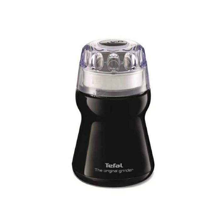 Mlin za kavu Tefal GT110838 kapaciteta mljevenja 50 g (9 šalica). Lako se koristi pritiskom na poklopac. Pogodno i za mljevenje začina, orašastih plodova i bilja.