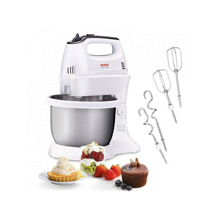 Uz Quickmix ručni mikser sa posudom, miješanje sastojaka bit će brzo i jednostavno! Quickmix je svestrani, snažni električni ručni mikser sa posudom koji će pripremu slastica učiniti brzim i lakim! Sa svojim motorom od 300 W, 5 postavki brzine i turbo funkcijom, daje vam izvrsnu kontrolu, bez obzira na recept.