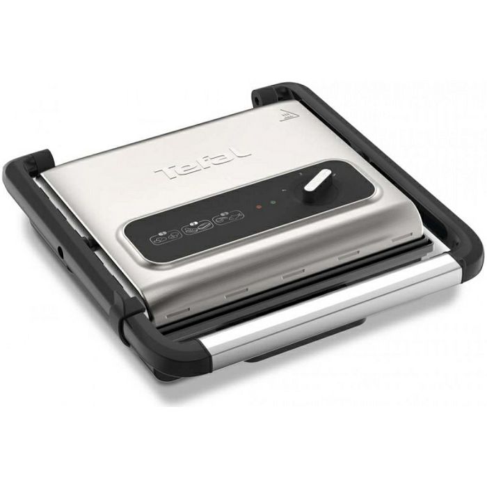 Tefal GC242D38 "Inicio Adjust" kontaktni roštilj je moćan višenamjenski stolni roštilj za meso i panini kruhove, uz koji možete uživati u ukusnim panini kruhovima kao u restoranu i savršeno pečenoj hrani zahvaljujući snazi od 2000 W i tri -fazni termostat, s njim možete pripremati povrće, panini kruhove, kobasice, ribu i meso. Čišćenje je jednostavno jer ima neljepljive površine i omogućuje skladištenje u okomitom položaju.
