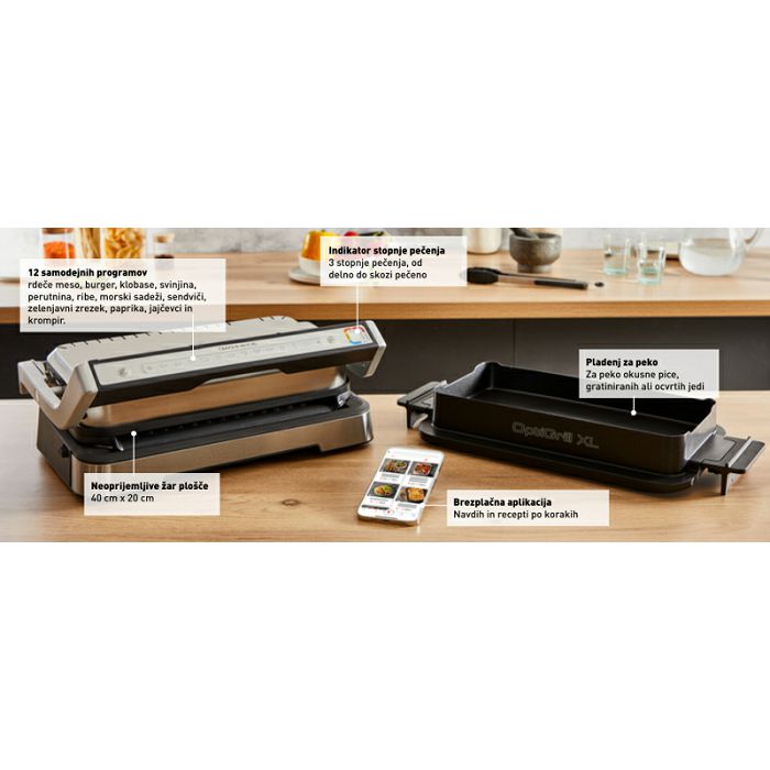 OptiGrill 4u1 XL nudi savršene rezultate roštiljanja po vašem ukusu, s XL performansama. Kombinira pametni stolni roštilj, vanjski roštilj, pećnicu i kompletan uređaj za kuhanje u jednom uređaju za vaše svakodnevne obroke - od sočnog mesa do pečenog povrća i više.