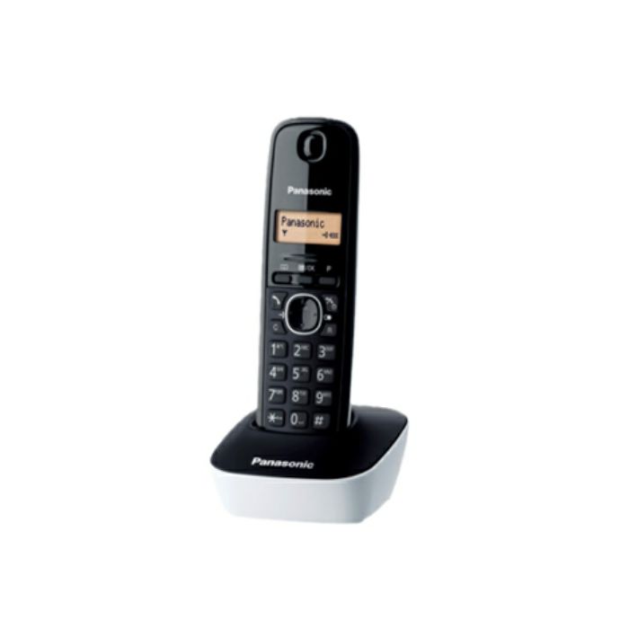 KX-TG1611FXW Panasonic bežični telefon Imenik s 50 unosa Navigacijska tipka Sukladnost funkciji ID pozivatelja Broj melodija: 6 Broj tonova: 6 Pozadinsko osvjetljenje LCD: jantar Sat i datum Alarm Glasnoća slušalice: 5 koraka Mogućnost postavljanja na zid Funkcija pronalaženja slušalice ili paging Dimenzije slušalice: 49 x 159 x 30 mm Boja: crna/bijela
