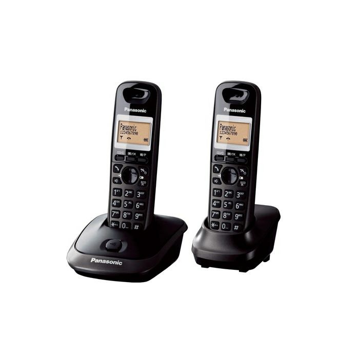 KX-TG2512FXT Bežični telefon sa dvije slušalice Panasonic 1.4-inčni LCD ekran Imenik za 50 imena i brojeva Sukladnost funkciji ID pozivatelja Lista poziva ID pozivatelja Broj tonova (unaprijed postavljeni): 10 Glasnoća zvona (6 koraka + isključenje) Sat i datum Konferencijski poziv Odgovor s bilo kojom tipkom Više jezika na zaslonu Mogućnost postavljanja na zid Funkcija pronalaženja slušalice ili paging Dimenzije slušalice: 48 x 159 x 32 mm Boja: crna