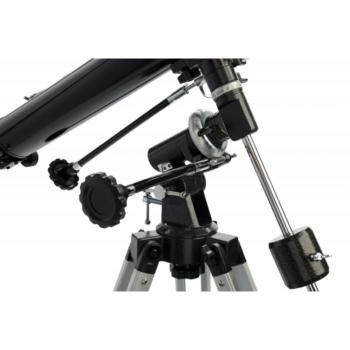 U pakiranju: teleskop 60 mm s lećom, ekvatorijalni nastavak s finim pogonima, protuutezi, aluminijski stalak s policom, dijagonalna prizma za postavljanje slike, Okular od 20 mm, okular od 4 mm, 3x Barlow leća, 5x24 tražilo