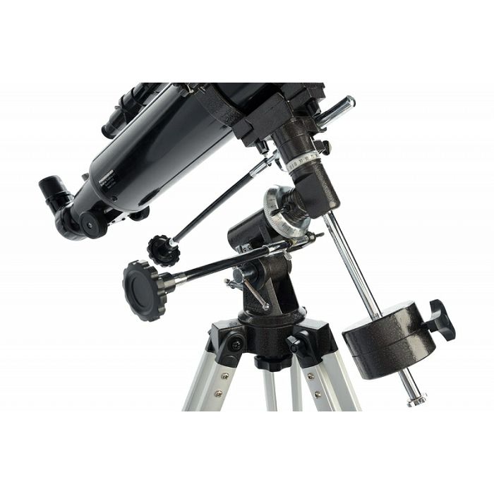 Ovaj refraktorski teleskop dizajniran je za promatranje noćnog neba: ako postavite ekvatorijalnu montažu prema sjeveru, trebate pratiti teleskop samo u jednoj osi
