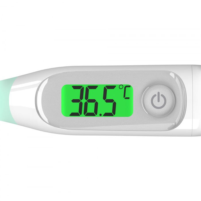 Precizno i ??brzo mjerenje za 5 sekundi Osvjetljenje ekrana u tri boje Izvrsno čitljiv i velik displej opremljen je osvjetljenjem u tri boje, koje pokazuje izmjerenu temperaturu. Zeleno označava normalnu temperaturu, narančasto povišenu, a crveno znak groznice.